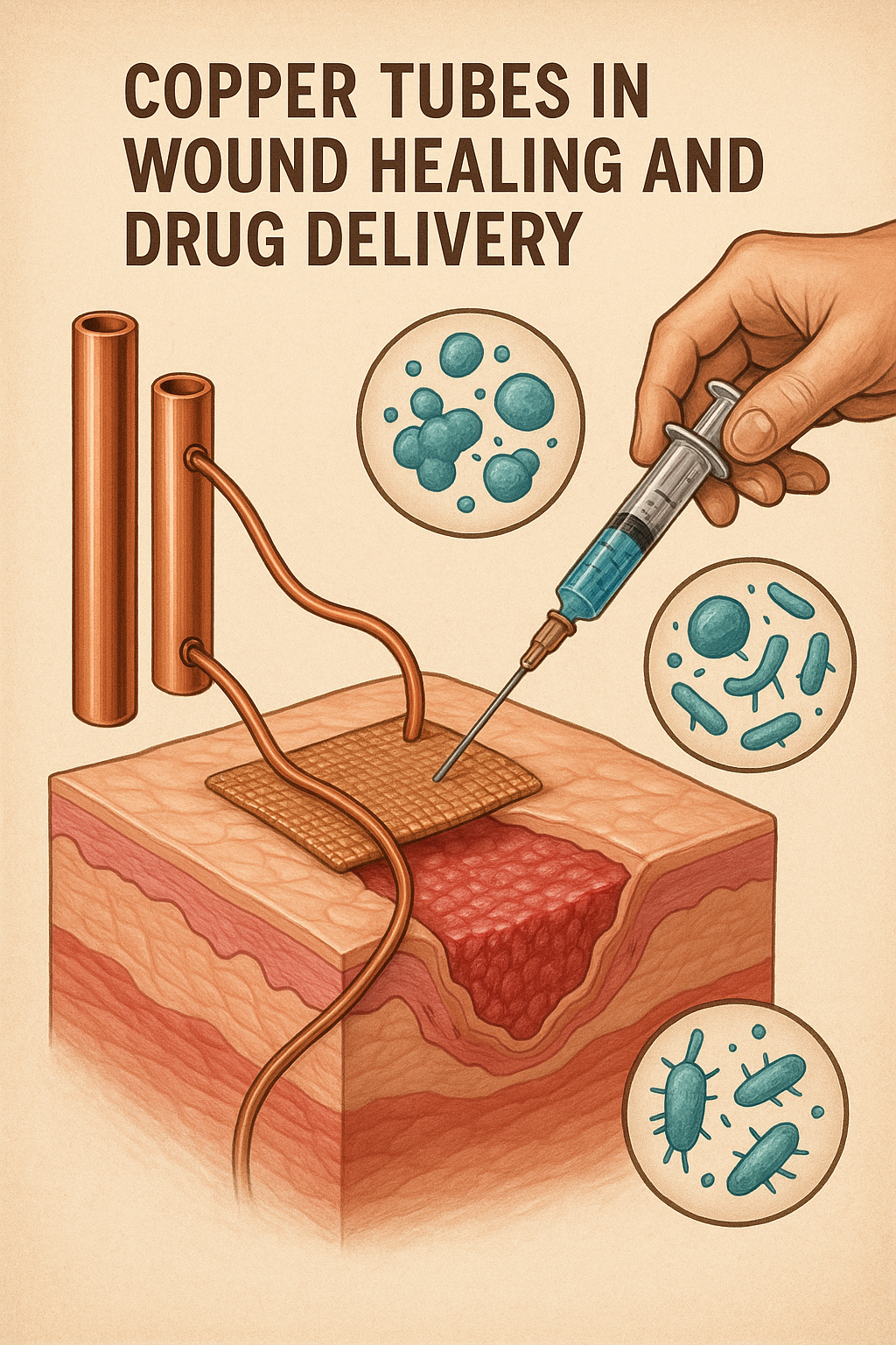 پانسمان های تزریق شده با مس، که اغلب با لوله های مسی خالص ترکیب می شوند، به عنوان وسیله ای برای ارائه درمان موضعی محبوبیت پیدا می کنند. مشخص شده است که این پانسمانها خطر عفونت را کاهش میدهند و باعث بهبود سریعتر میشوند و آنها را به ابزاری مهم در درمان زخمهای باز، زخمهای دیابتی و برشهای جراحی تبدیل میکنند.