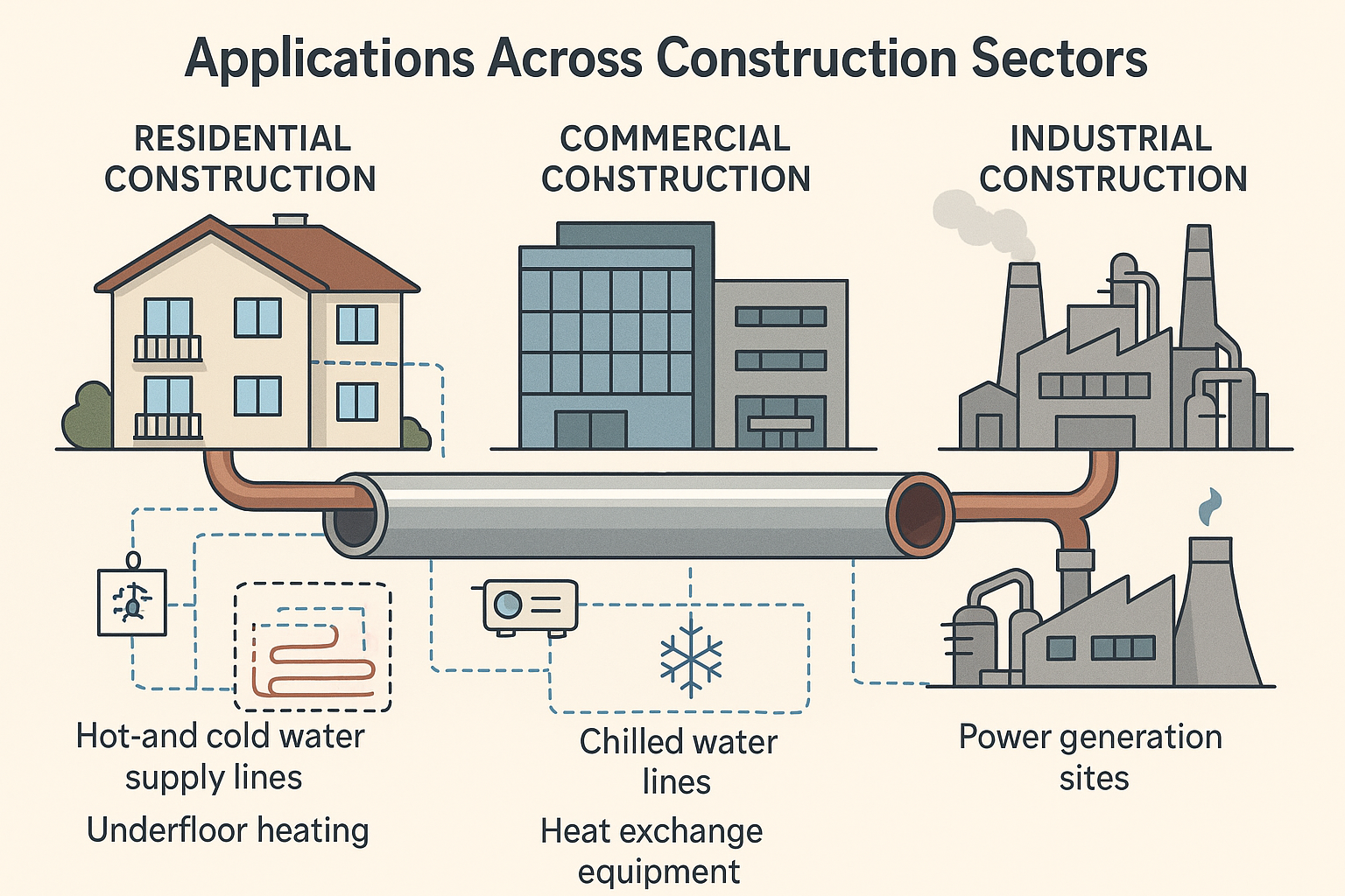 تطبیق پذیری از نقره ای copper tubes آنها را برای طیف گسترده ای مناسب می کند کاربردهای ساخت و ساز . در ساخت و ساز مسکونی ، they are commonly used in خطوط تامین آب سرد و گرم ، سیستم های گرمایشی ، and شبکه های گرمایش از کف . دوام آنها به کاهش خطر نشت و خرابی های مرتبط با خوردگی کمک می کند، که به ویژه در ساختمان های مسکونی چند واحدی .