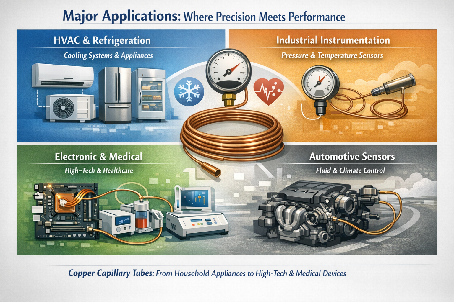 به دلیل توانایی آنها در کنترل جریان سیال با دقت بسیار زیاد، لوله های مویرگی مسی در همه چیز از لوازم خانگی گرفته تا تجهیزات پزشکی نجات دهنده یافت می شوند.